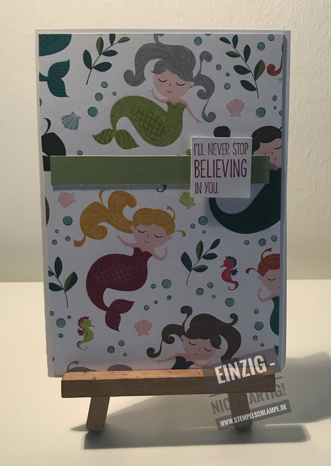 Das Papier ist aus dem Frühjahrskatalog, aber in dem Hauptkatalog sind auch noch Meerjungfrauenstempel – und frau kann die super kombinieren.